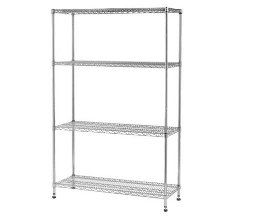 This commercial four-shelf steel wire shelving unit can easily organize any space or room. Assemble this chrome shelving unit without tools. . Perfect for homes, offices, garages, kitchens, restaurants, file rooms, and any other room you need to organise
